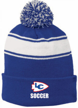 Royal with White Stripes Cuffed Pom Beanie with Logo – LKSC