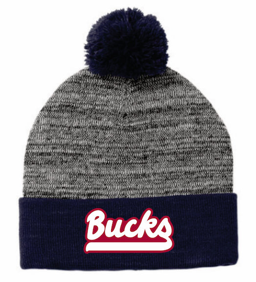 Navy with Grey Heather Cuffed Pom Beanie with Logo – DMSD