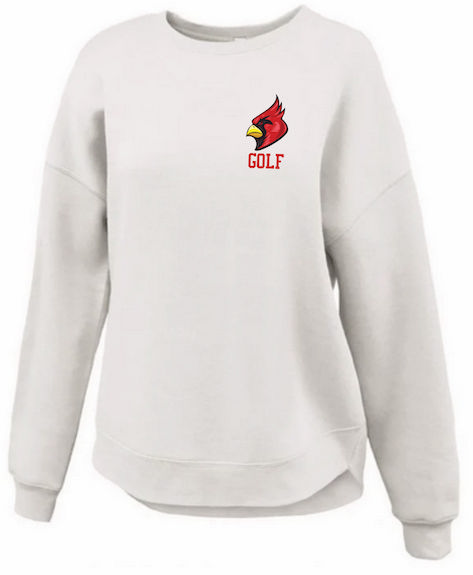 White Women’s Curve Bottom Sponge Fleece Crew with Logo – PMEG